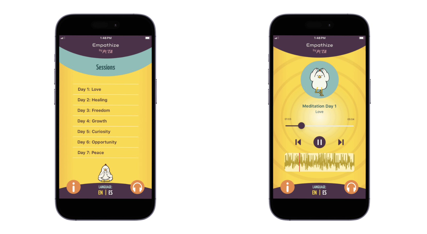 Animal rights group PETA is launching a brand-new free iPhone app, Empathize, which is designed to guide users through a series of meditations and mindfulness exercises to connect on a deeper level with themselves and with other animals – namely one of the most abused species on the planet: chickens.